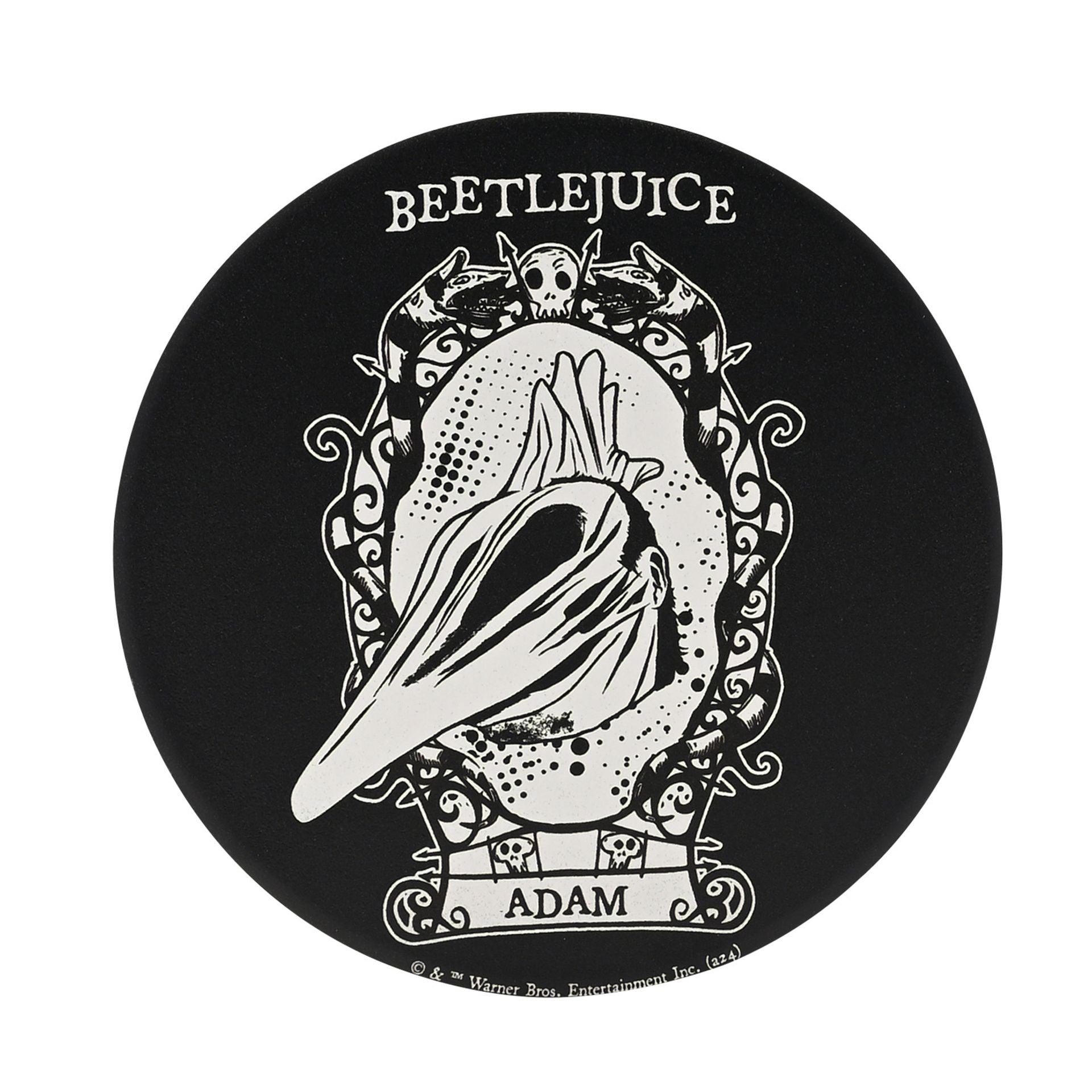 Celebrate the release of the new 2024 Beetlejuice movie, with this black ceramic round coaster from the brand-new Beetlejuice range. The design features an illustration of Adam Maitland, depicted with a stretched face like in the scene from the original movie. Complementing the central image is the Beetlejuice franchise name to the top in white lettering, with the character's name to the bottom. This is a perfect gift or self-purchase for any Beetlejuice fanatic. It’s showtime for Beetlejuice fans old and new. The range includes mugs, with matching coasters, and hanging decorations in four designs and two candle designs that any fan of this cult classic will enjoy.
