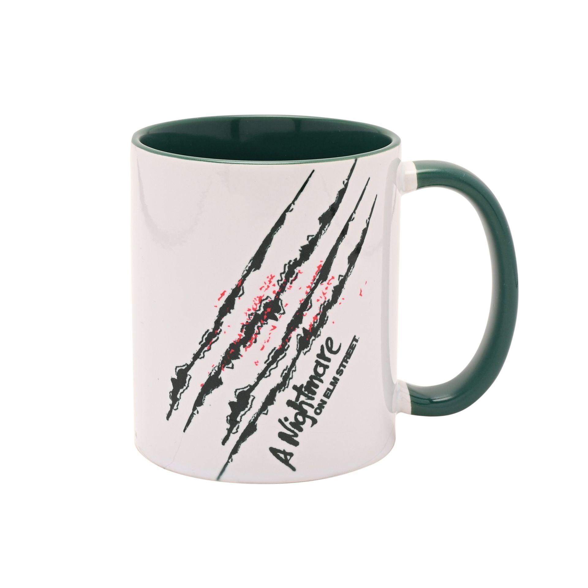 The Warner Bros Nightmare on Elm Street Mug 11oz Green Inside - Slash is a great addition to any classic film fan's collection. The 11oz mug, featuring a chilling slash silhouette, is an ideal gift for movie fans or as a unique keepsake for those who enjoy the darker side of cinema.