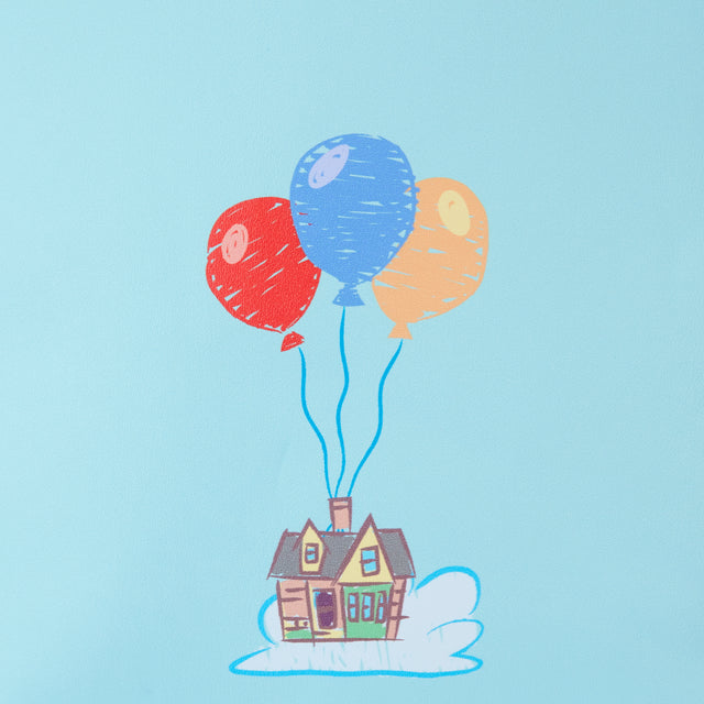 Up, up, and away! Let your imagination take flight with the Loungefly Disney-Pixar Up 15th Anniversary Spirit of Adventure Mini Backpack. On the front, a young Ellie and Carl pilot a homemade aircraft. As colourful balloons trail behind them, the two children sit inside a box decorated with hand-drawn designs. A grape soda badge appears as an enamel zipper charm, providing easy access to the bag’s front zipper pocket. Box flaps extend on the bag’s side pockets with additional doodled décor, and a cloudy sky brings the adventure to life. On the back, an illustration of Carl and Ellie’s house hints at the future. This mini backpack makes a heartwarming addition to any outfit and will keep your belongings safe on your next flight.