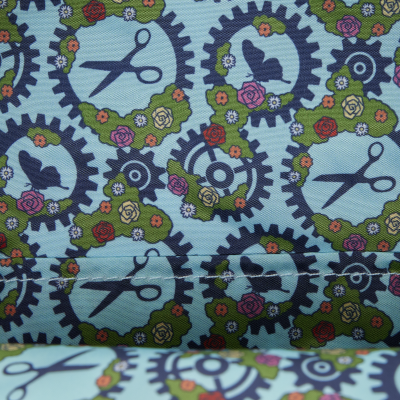 This mini backpack is for you! On the front, you'll find Edward Scissorhands holding a heart-shaped shrub with roses on it. It opens up to reveal an image of Kim. The rest of the bag features green sherpa to embody the hedge, and you'll find fence details on the side pockets. The straps also feature safety pin details!