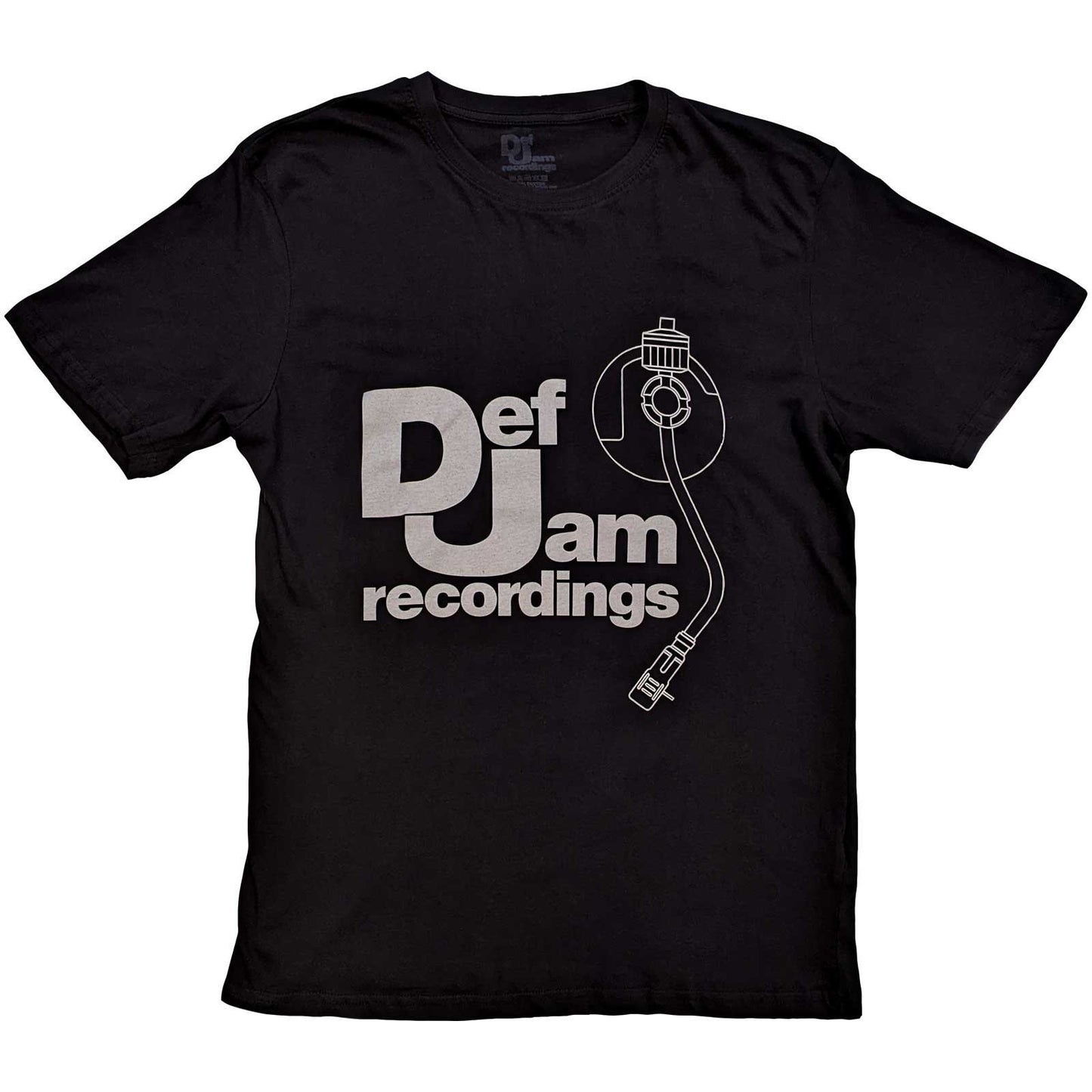 An official licensed Def Jam Recordings Unisex T-Shirt featuring the 'Logo & Stylus' design motif. This high quality T-Shirt is available in a black colourway.