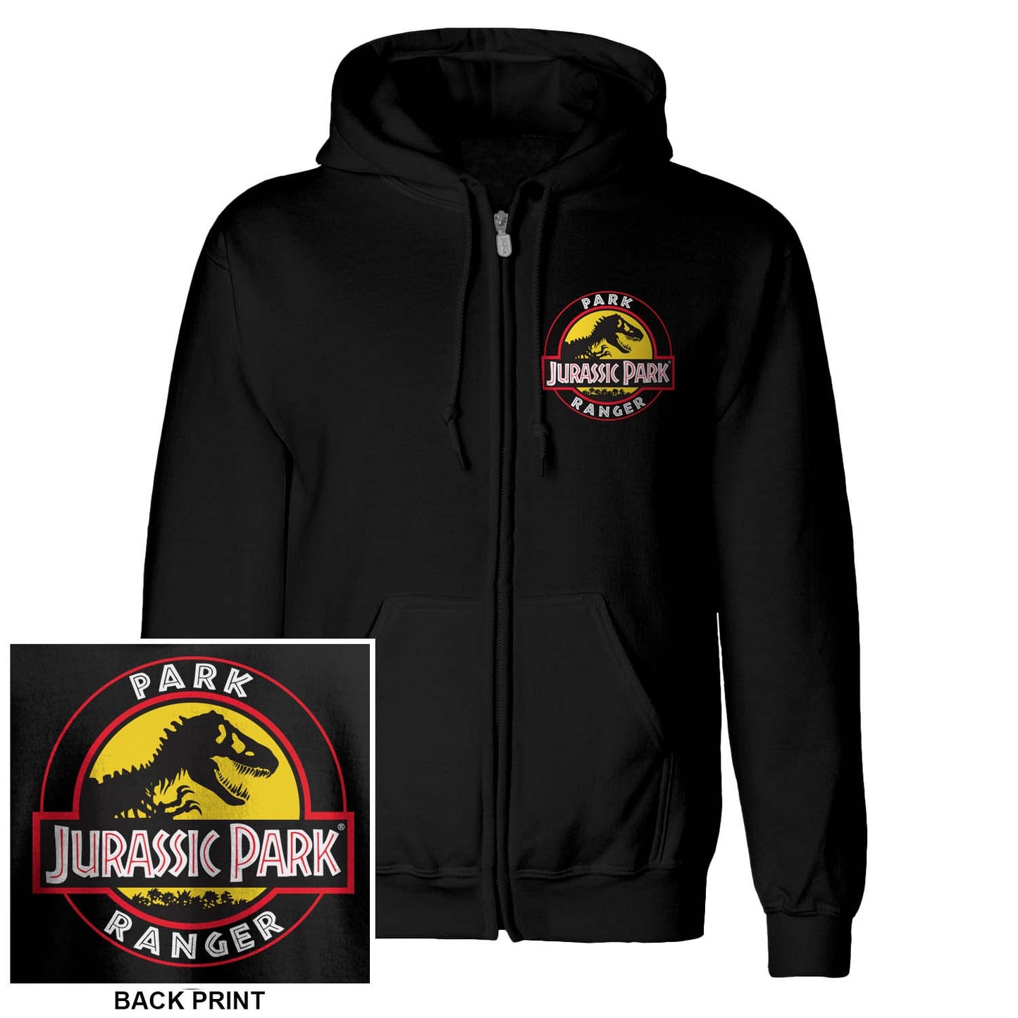 An official licensed unisex cotton Pullover Hoodie featuring the Jurassic Park 'Park Ranger' design motif.