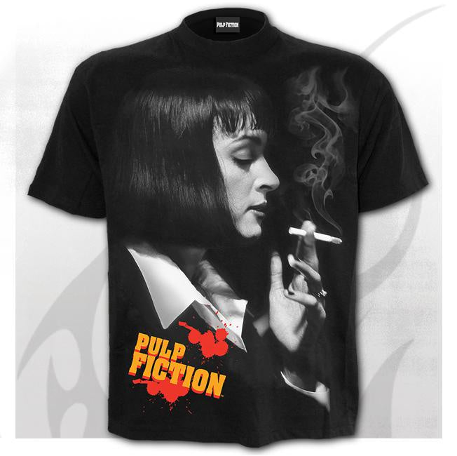 fficial Licensed Product. Don’t be square, be cool with this moody and menacing design featuring Uma Thurman as Mia Wallace smoking a cigarette.